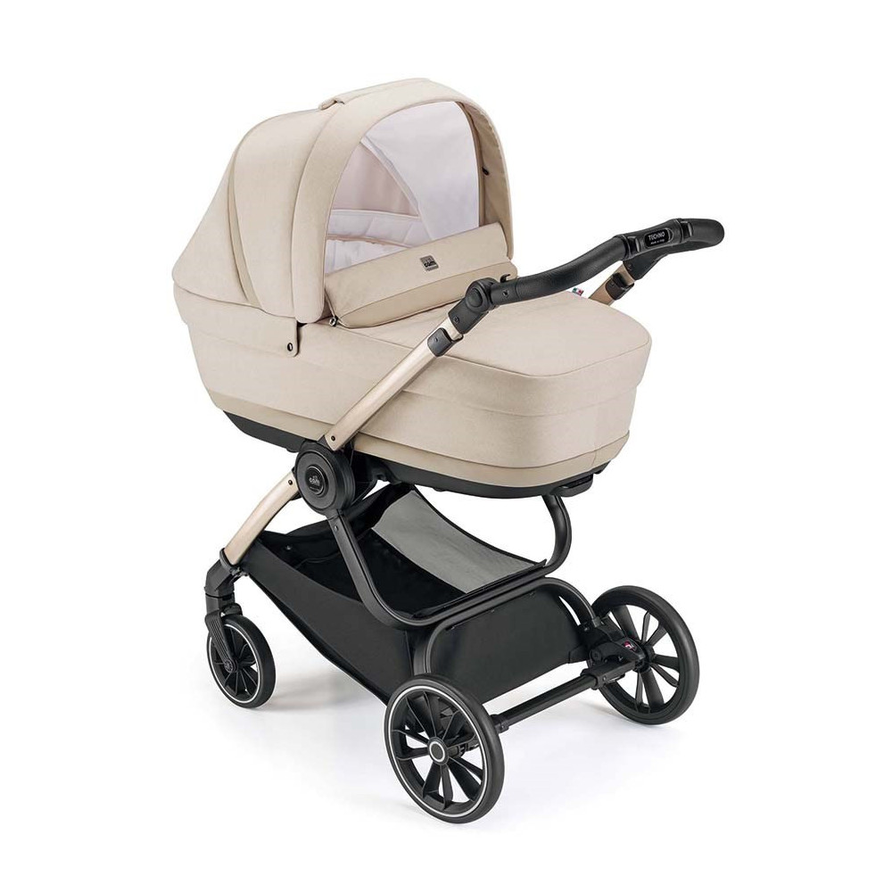 Нова ширша люлька схвалена для перевезення дитини в автомобілі й оснащена системою швидкого встановлення/зняття з рами. Прогулянковий блок реверсивний з просторим сидінням, регульованою за нахилом спинкою і великим капюшоном з сітчастими вставками.
