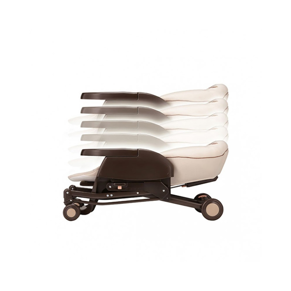 Серед відмінних рис варто також відзначити можливість зміни нахилу спинки до 5 положень і висоти колиски на 5 рівнів. Для простоти і зручності пересування колиска-стільчик оснащен 4 блоками коліс з системою одночасної фіксації лівого і правого колеса.