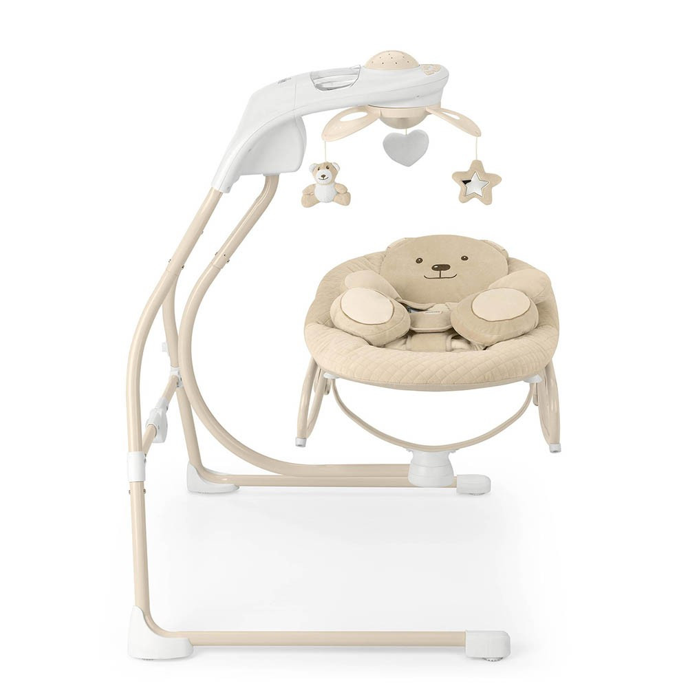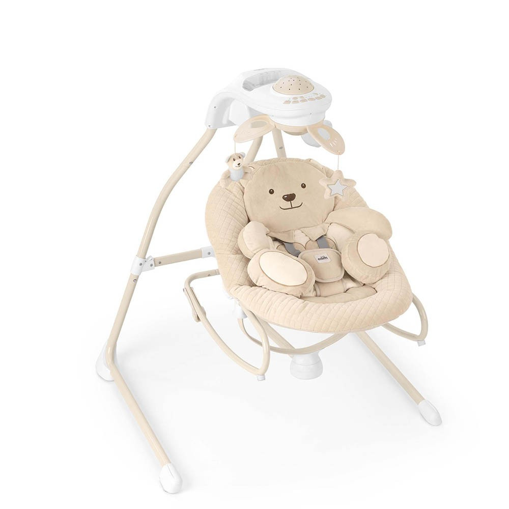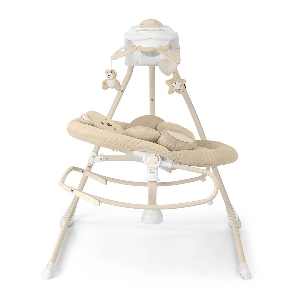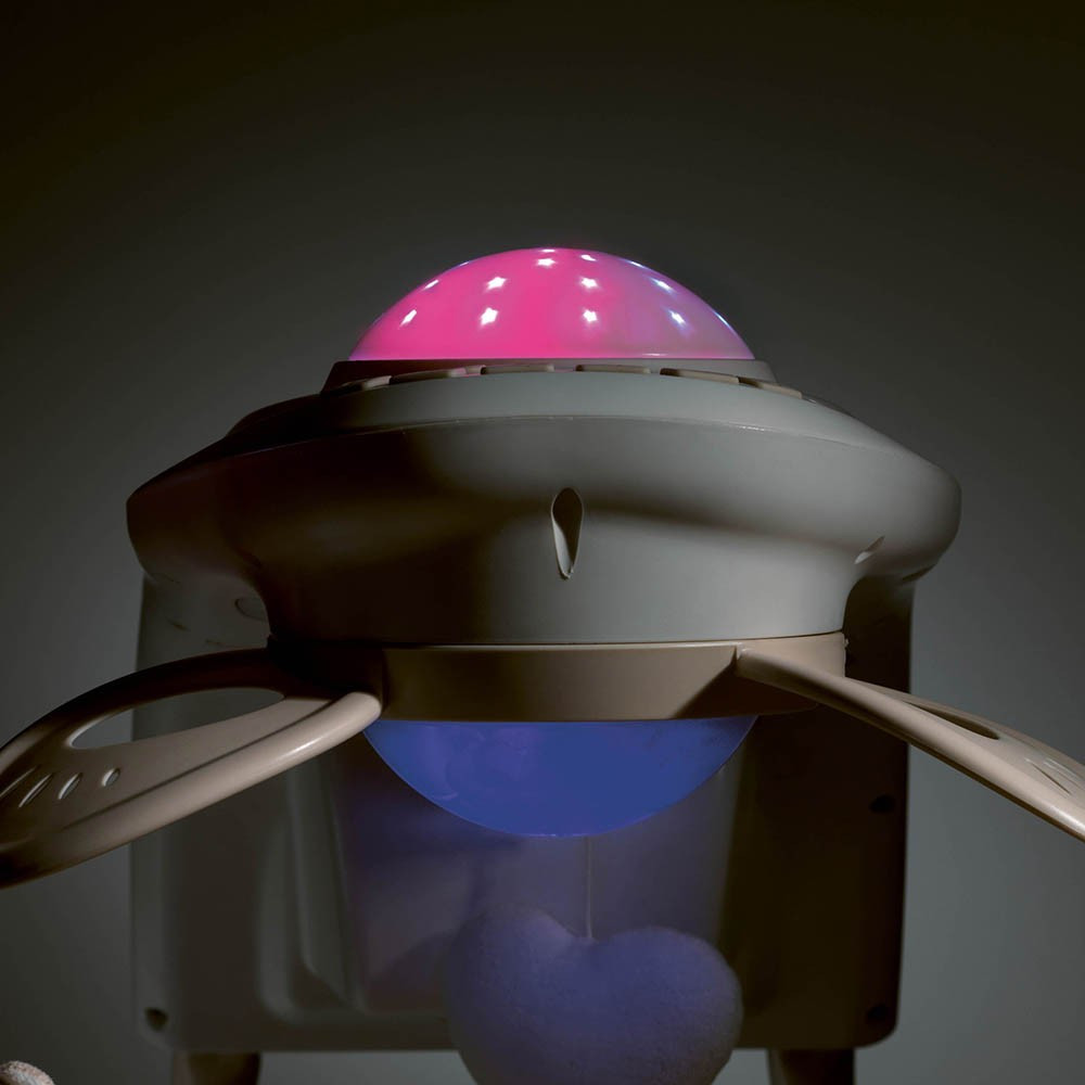 Крісло-гойдалка з музикою Cam Gironanna Evo - це сучасні гойдалки з електричним мобилем, мерехтливим світлом і музикою, як дивовижний проектор, який проектує зоряне небо на стелю і як портативний шезлонг з похилою спинкою і качати основою.