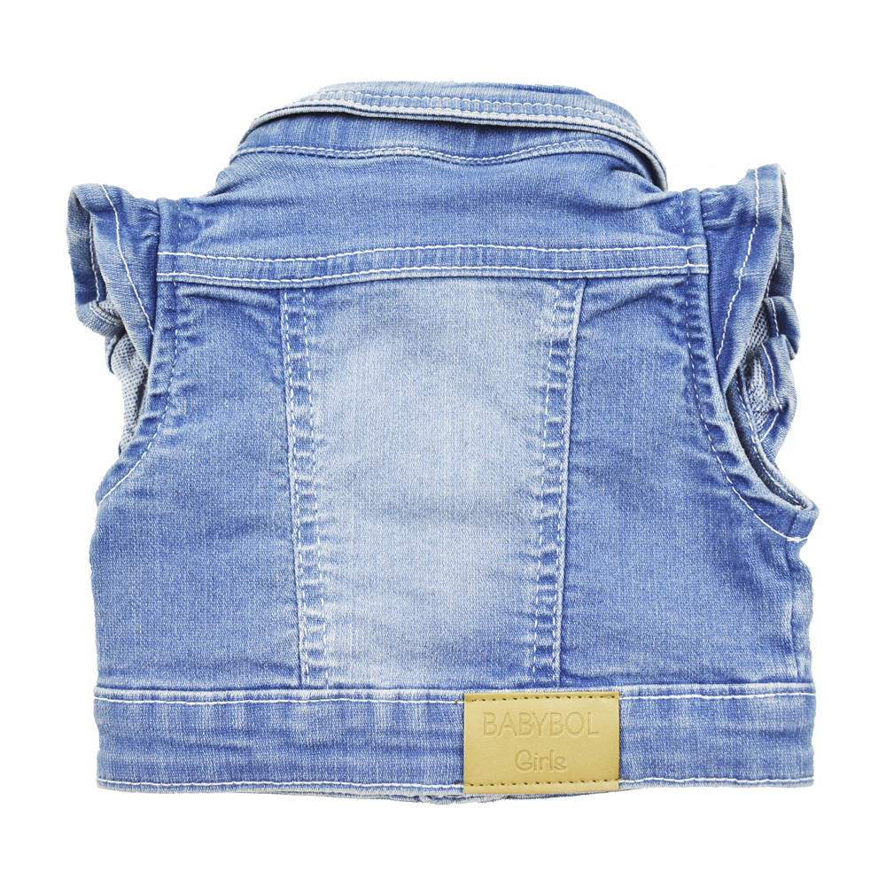 Для літнього дня BabyBol пропонує Вам цю привабливу і зручну джинсову жилетку. Жилетку прикрашають бантики і рукавчики крильця. Ідеально підходить, як для спортивного вигляду так і для елегантного образу.